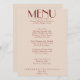 A colorful retro funky modern bright wedding dinner menu. Which features chic template design of boho vintage creamy background and deep red typography and hand written menu. Perfect and matching with the whole suite.
