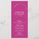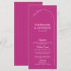 The Modern Minimal Magenta with Arch Wedding Menu embodies a clean and contemporary design aesthetic. Its foundation is a striking magenta background, which serves as a bold canvas. The use of white text on this vibrant backdrop ensures readability and adds an elegant contrast.