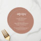 Moderne Rustique terre cuite brun, Formes de Plaques rondes, Mariage elopement Dîner Menu. Un menu de bar parfait pour votre grand jour. Vous pouvez modifier les couleurs de police du script et le contenu et les polices du menu pour répondre à vos besoins.