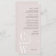 Des menus monogrammes élégants pour votre dîner de mariage ou de répétition ornent vos initiales en bas à gauche, jointes par un swooping orné "et", sur un arrière - plan gris pâle.