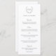Menu mariage de style classique noir et blanc avec une crête mariage avec votre monogramme à l'intérieur d'une couronne avec les en-têtes dans un script / calligraphie. Ces menus de mariage simples mais élégants sont parfaits pour un mariage formel.