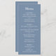 Faites savoir à vos invités ce qui se trouve dans le menu de votre réception de mariage à l'aide de ce menu monogramme classique à thème mariage bleu poussiéreux.