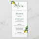 Citrons botaniques Jaune Verdure Moderne Elégant Mariage Design à la carte. Un menu de mariage personnalisé avec vos informations facilement changé pour customiser votre mariage stationnaire. Mariage personnel stationnaire de Just Fine Designs.