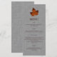 Une feuille d'érable orange subtilement monogrammée, sur un arrière - plan de lin illustré, orne ce menu, ce qui le rend parfait pour un mariage automne ou automne, événement ou action de grâces,