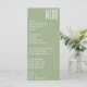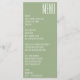 Style épuré vert et blanc, menu mariage ultra moderne et personnalisé avec une typographie monographique audacieuse. Ce menu est facilement modifiable. Si vous avez besoin d'aide pour la personnalisation de ce produit ou si vous avez besoin de plus de produits correspondants pour cette collection, envoyez-moi un message aimable via Zazzle.
