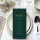 Améliorez votre paysage de table mariage grâce à notre Carte de menu Mariage Monogramme vert MinimalisteEmerald. Avec le menu d'un côté et des monogrammes délicats de l'autre face à un arrière - plan vert émeraude serein. Cette carte ajoute une touche d'élégance minimaliste à votre décor de réception.