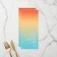 L'arrière - plan pour les pièces de cet ensemble minimaliste de mariage est un dégradé de couleurs saisissant allant de l'orange mandarine au jaune beurre en passant par le turquoise. La carte de menu mariage présentée ici présente un design élégant et moderne et une police sans serif contemporaine pour ajouter à son attrait. Ajoutez facilement vos sélections de menu, vos initiales et la date du mariage à l'aide du modèle fourni. Recherchez ID741 pour voir l'ensemble complet des produits correspondants dans Ciel tropical ou choisissez l'une des autres combinaisons de dégradé disponibles pour convenir à votre palette de couleurs mariages.