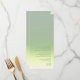 L'arrière - plan des pièces de cet ensemble mariage minimaliste est un dégradé de couleurs saisissant, du vert sauge doux au jaune pâle en passant par l'ivoire. La carte de menu mariage présentée ici présente un design élégant et moderne et une police sans serif contemporaine pour ajouter à son attrait. Ajoutez facilement vos sélections de menu, vos initiales et la date du mariage à l'aide du modèle fourni. Recherchez ID741 pour voir l'ensemble complet des produits correspondants dans Spring Meadow ou choisissez l'une des autres combinaisons de dégradé disponibles pour convenir à votre palette de couleurs mariage.