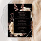 Ce menu mariage élégant et sobre présente un bouquet luxuriant et romantique en ivoire avec fausse feuille d'or rose et feuillage de parties scintillant sur un arrière - plan noir. Customisez le texte rose rose dans des polices de style sur un rectangle noir. Le dos de la carte est noir.