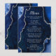 Menu Navy Blue and Silver Agate Marble Wedding