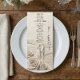 Elevate your reception tablescape with this elegant monochromatic design featuring a romantic couple amidst rolling hills, rendered in warm ivory tones.This design showcases a highly detailed, monochromatic illustration that mimics the look of a classical bas-relief sculpture. A bride and groom are depicted holding hands on a cobblestone path, framed by large blooming roses in the foreground and rolling hills in the distance. The color palette utilizes sophisticated shades of cream, beige, and off-white to create a warm, neutral aesthetic. Typography is arranged in a formal hierarchy, pairing classic serif fonts for the main courses with a vertical, handwritten script for accent text.