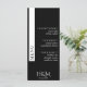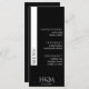 Carte de menu de réception de mariage noir avec bande de côté blanche. Une typographie élégante pour un regard cher à un prix abordable. Customisez la liste des repas et les détails personnels. Idéal pour un thème mariage moderne minimaliste.