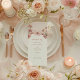 Fêtez la journée spéciale de votre petit-fils avec notre menu d'anniversaire "Notre petit papillon"! Délicat et fantaisiste, ce design présente des teintes roses et rousses douces, agrémentées de détails floraux féminins et de charmantes papillons. Parfait pour une fête d'anniversaire magique et inspirée de la nature, ce design élégant capture magnifiquement l'innocence et la joie de l'enfance - et surtout, le grand jour de votre petit papillon.