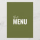 Un menu de dîner mariage moderne et coloré rétro et moderne. Il présente un design modèle chic de boho vintage vert olive arrière - plan et typographie blanche et menu audacieux en blanc. Parfait et assorti à toute la suite.