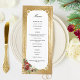 Créez un mariage hivernal inoubliable avec cette élégante carte de vacances avec un luxuriant spray de roses de Noël, poinsettia, saint et pin, étiquette blanc avec une bordure dorée ornée et un opulent faux métallisé dégradé d'or damassé arrière - plan. Le verso comporte une crête dorée personnalisée avec des champs de texte initiaux.