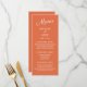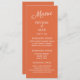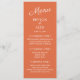 Menu orange avec texte blanc pour le dîner de répétition, la réception de mariage ou tout autre événement que vous planifiez. Les couleurs arrière - plan et texte sont entièrement personnalisables avec l'outil de design de Zazzle, donc créez votre menu pour correspondre à votre propre événement.