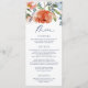 Orange, Pêche & Dusty Blue Floral Mariage Menu : Ce beau menu peut être utilisé à votre douche nuptiale ou déjeuner ou même votre mariage. Il présente des fleurs audacieuses en orange, bleu poussiéreux, bleu marine et rose acajou. Le dos contient vos initiales et la date mariage. Vous pouvez ajouter ou supprimer du texte au verso en cliquant sur "customiser plus loin". Utilisez ceci pour votre menu de répétition, menu de réception de mariage, menu de dîner fiançailles, etc.