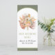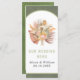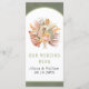 Feuilles tropicaux de palmiers séchés, pampas herbe et protéa fleurs vert terre cuite arche botanique mariage carte menu. Ce joli design mariage est orné d'un cadre en arc sur arrière - plan teinté vert. Dans le cadre il y a un bouquet de feuilles de palmiers séchés, des fleurs de protéa et de l'herbe de pampas.