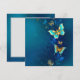 Or volant, papillon bijoux sur arrière - plan textuel bleu. Conception avec papillons.