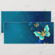 Or volant, papillon bijoux sur arrière - plan textuel bleu. Conception avec papillons.
