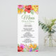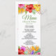 Ce menu coloré présente une bordure supérieure et inférieure de succulentes fleurs tropicales dans des tons chauds et éclatants, le tout sur un arrière - plan blanc immaculé. Vous pouvez cliquer sur le lien customiser pour ajouter vos propres détails de menu. Vous pouvez également changer le style et la couleur de police à votre goût. Il s'agit d'une magnifique suite mariage entièrement personnalisée.