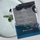 Réglez l'ambiance du menu mariage à l'ambiance tropicale pour votre mariage sur la plage avec ce modèle qui a le design parfait et le thème visuel pour rendre votre mariage plus spécial et mémorable. Cette modèle présente un bel arrière - plan artistique aux vagues de l'océan, aux couleurs cool, dans les tons bleu foncé, noir et blanc. Les styles de police utilisés avec la calligraphie de script le rendent plus attrayant visuellement.