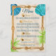 Améliorez la soirée de réception de votre mariage de destination avec ce menu de plage avec un cadre de corde avec des noeuds nautiques, décoré de coquillages turquoise et or peler feuilles de palmiers frais sur la texture de sable arrière - plan. Remplacez l'exemple de texte ainsi que la carte des espaces réservés à l'arrière par la vôtre pour une conception personnalisée. Parfait pour les mariages sur la plage, les mariages de destination, les mariages tropicaux, les mariages insulaires, les mariages d'été et autres événements liés à la mer. Visitez la collection pour voir l'ensemble de la suite.