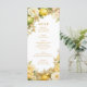 Luxury Delicate Mediterranean Lemons & Flowers Frame Wedding Menu Cards with Digital Glitter Effect and Back Photo.