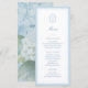 Menu plat de mariage monogrammé à l'hydrangea bleu