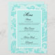 Menu plat mariage damassé turquoise