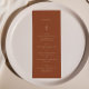 Elégant simple feuille de terre caracotta brûlé orange 4x9" Mariage Table Menu Cartes Dîner plat Menu dans la calligraphie script moderne. Vous pouvez trouver une collection d'articles correspondants et la taille 5x7 sur notre magasin VelvetPaperCo.