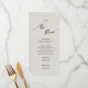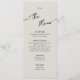 Menu plat pour Mariage Boho. Les pastels élégants, le design minimaliste et les touches personnelles créent une atmosphère sophistiquée et formelle.