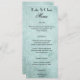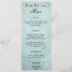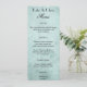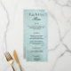 Un élégant menu de mariage avec une belle police de caractères noir sur une texture de papier vintage vert menthe.