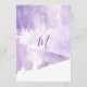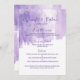 Éclaboussure pourpre violette moderne, artsy, et élégante d'aquarelle, cartes de menu de réception de mariage. Cette conception classique et sophistiquée est parfaite pour la réception de mariage chique, élégante, et à la mode. Personnalisez avec votre propre menu sur l'avant, avec vos noms et dates. Customisez alors le dos avec votre initiale de monogramme. Toute la conception d'impression de photo.