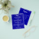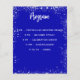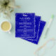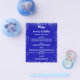 Bitte beachten Sie, dass diese Einladung auf Flyer Papier und sehr dünn ist. Umschläge sind nicht enthalten. Für dickere Einladungen (gleiche Gestaltung) besuchen Sie bitte unseren Shop. Ein königlich blauer Hintergrund. Weißer Text. Dekoriert mit Imitaten silbernen Glitzer, Glitzern. Front: Personalisieren Sie Ihren Namen, das Datum und das Menü. Zurück: Programm. Wenn Sie ein großes Programm haben, können Sie den Zeilenabstand verringern.