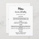 Transparenter Hintergrund Schwarzer Text. Front: Personalisieren Sie Ihren Namen, das Datum und das Menü. Zurück: Programm. Wenn Sie ein großes Programm haben, können Sie den Zeilenabstand verringern. Transparenter Hintergrund, sodass Sie Ihre Pary-Designfarbe im Designwerkzeug hinzufügen können. 1 Blatt = 1 Menü, mit dem die Kante an Kante aufgedruckt ist.