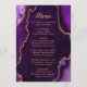 Create a striking presentation with this purple and gold agate marble menu, perfect for wedding receptions and versatile enough for stylish multi-purpose use. Deep amethyst tones, organic stone-inspired textures, and shimmering gold accents come together to create a refined yet dramatic look that pairs beautifully with fall or winter celebrations. Designed to complement elegant, modern, and glamorous events, this agate-inspired menu can be customized for wedding dinners, cocktail hours, dessert tables, or upscale event and restaurant menus, offering timeless sophistication that extends well beyond the wedding day.