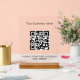 Transparenter Hintergrund Personalisieren und fügen Sie Ihren Firmennamen, Ihren eigenen qr-Code und einen Text hinzu. Schwarzer Text.