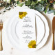 Customisez le joli menu Quinceañera Tournesol Jaune avec les détails du repas que vous pourrez servir à votre dîner de fête de quinze ans ou déjeuner en ajoutant la salade ou le premier plat, entrée ou deuxième plat et dessert ou troisième plat. Personnalisez-le avec le nom de la fille de 15 ans anniversaire et la date de fête du jour ouvrable. Cette élégante carte de coing personnalisée présente des tournesols jaunes ornant les coins d'un arrière - plan blanc.