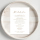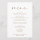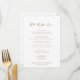Menu de réception de mariage chic avec "menu" dans un script doré moderne, votre menu customisé dans une typographie or moderne simple, et vos prénoms et votre date de réception dans l'élégante typographie dorée serif.
