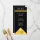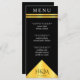 Carte de menu de réception de mariage noir avec bloc de couleur or triangle géométrique et rayures. Une typographie élégante pour un regard cher à un prix abordable. Customisez la liste des repas et les détails personnels. Idéal pour un thème mariage moderne minimaliste avec une touche de style.