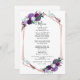 Planifiez votre journée dans le détail très dernier avec notre menu de mariage géométrique fleurie violette. Customisez facilement avec vos détails en cliquant sur le bouton "Personnaliser". Le design est moderne avec des couleurs tendance avec un joli bouquet floral et un cadre géométrique or rose. Utilisez le bouton "Customiser" pour réorganiser et formater le style et le placement du texte. Peut facilement être réadapté pour d'autres événements spéciaux comme anniversaires, fête d'anniversaire, nouveau bébé, baptême et plus encore.