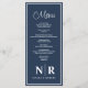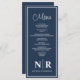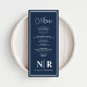 Faites-vous plaisir avec nos menus d'accueil Monogram Mariage bleu et blanc ou Diner Menus Fiançailles, un mélange parfait d'élégance et de personnalisation. Conçus avec un décor bleu marine sophistiqué et des accents blancs immaculés, ces menus ajoutent une touche de charme raffinée à votre mariage, à votre dîner de répétition ou à votre soirée de fiançailles. La combinaison de couleurs frappante et l'élégante conception monographique font de ces menus une caractéristique remarquable sur toute table à manger, assurant à votre événement une sensation de style intemporel. Nos menus personnalisés pour le dîner vous permettent de présenter vos choix de repas dans un format joliment conçu. Chaque menu est personnalisable, vous permettant d'ajouter vos noms, votre date et tous les messages spéciaux, créant ainsi une conservation unique pour vos invités. Idéal pour les mariages, les dîners de répétition et les fêtes de fiançailles, ces menus s'associent parfaitement aux cartes de place pour compléter votre table. Le design sobre et élégant complète n'importe quel thème, les rendant polyvalents pour diverses occasions. Ajoutez une touche de sophistication à votre événement spécial grâce à la Réception de Monogrammes Mariages bleu et blanc de la Marine ou aux menus de Dîner Fiançailles. Ces menus vous guideront non seulement à travers les délices culinaires de la soirée, mais aussi comme un souvenir élégant de votre célébration.
