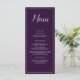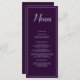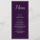 Un beau menu de réception de mariage, cet article dispose d'un arrière - plan violet avec une police et une bordure en argent. Le mot "Menu" est écrit en haut dans une belle police d'argent. Toutes les autres informations sont écrites en beaux caractères argentés. Personnalisez comme vous le souhaitez. Conception du menu : WeddingsbyRhoadie