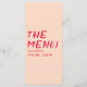 Un menu coloré rétro moderne et chic, rouge mariage et chatoyant. Ce qui présente un design modèle chic d'un arrière - plan de pêche boho brillant typographie de magenta rouge vif et un menu manuscrit en rouge. Parfait et assorti à toute la suite.