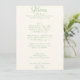 Un menu unique à la menthe verte rétro, un menu à la main et mariage. Ce qui présente un design modèle chic de boho vintage beige laiteux arrière - plan et menthe vert texte écrit à la main disposition. Parfait et assorti à toute la suite.