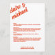 Découvrez nos charmantes Cartes à Menu Retro Simple Mariage, parfaites pour votre réception de mariage. Ces cartes de menu à plat mettent en valeur votre menu de réception avec une touche d'élégance vintage. Avec une liste concise de plats délicieux, nos Cartes à la Carte Retro Simple Mariage complètent sans effort votre esthétique mariage. Conçues pour un charme intemporel, ces cartes de menu ajoutent une touche classique à votre célébration. Parcourez notre collection pour découvrir le mélange parfait de simplicité et de charme rétro. Faites l'éloge de votre réception de mariage avec ces cartes à menu élégantes et simples qui captent l'essence d'une époque révolue, assurant une expérience gastronomique inoubliable pour vos invités.