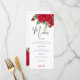 Une floraison de roses rouges riches est en haut à droite sur l'avant et en bas à gauche sur l'arrière, La typographie de l'en-tête principal est un script stylé pour le mot Menu en noir. Le reste du texte que vous pouvez facilement personnaliser. Vous pouvez également modifier la couleur et la police du texte modifiable si vous le souhaitez via l'option Cliquer pour Customiser plus.
