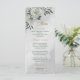 Carte de menu mariage unique avec fleurs blanches romantiques et feuilles verts. POUR PLUS DE PRODUITS CORRESPONDANTS cliquez sur la collection ci-dessus ou contactez-moi.