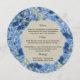 Petit menu rond à l'hydrangea bleu et au design en burlap. Personnalisez le texte comme vous le souhaitez.